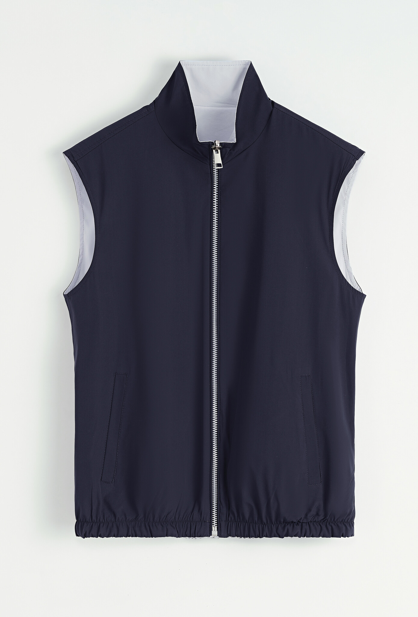 Heren bodywarmer gemaakt van dun kwaliteit. Deze bodywarmer kan twee kanten gedragen worden. Deze bodywarmer sluit met een elastische boord en rits sluiting. De bodywarmer heeft twee steekzakken en 1 binnenzak