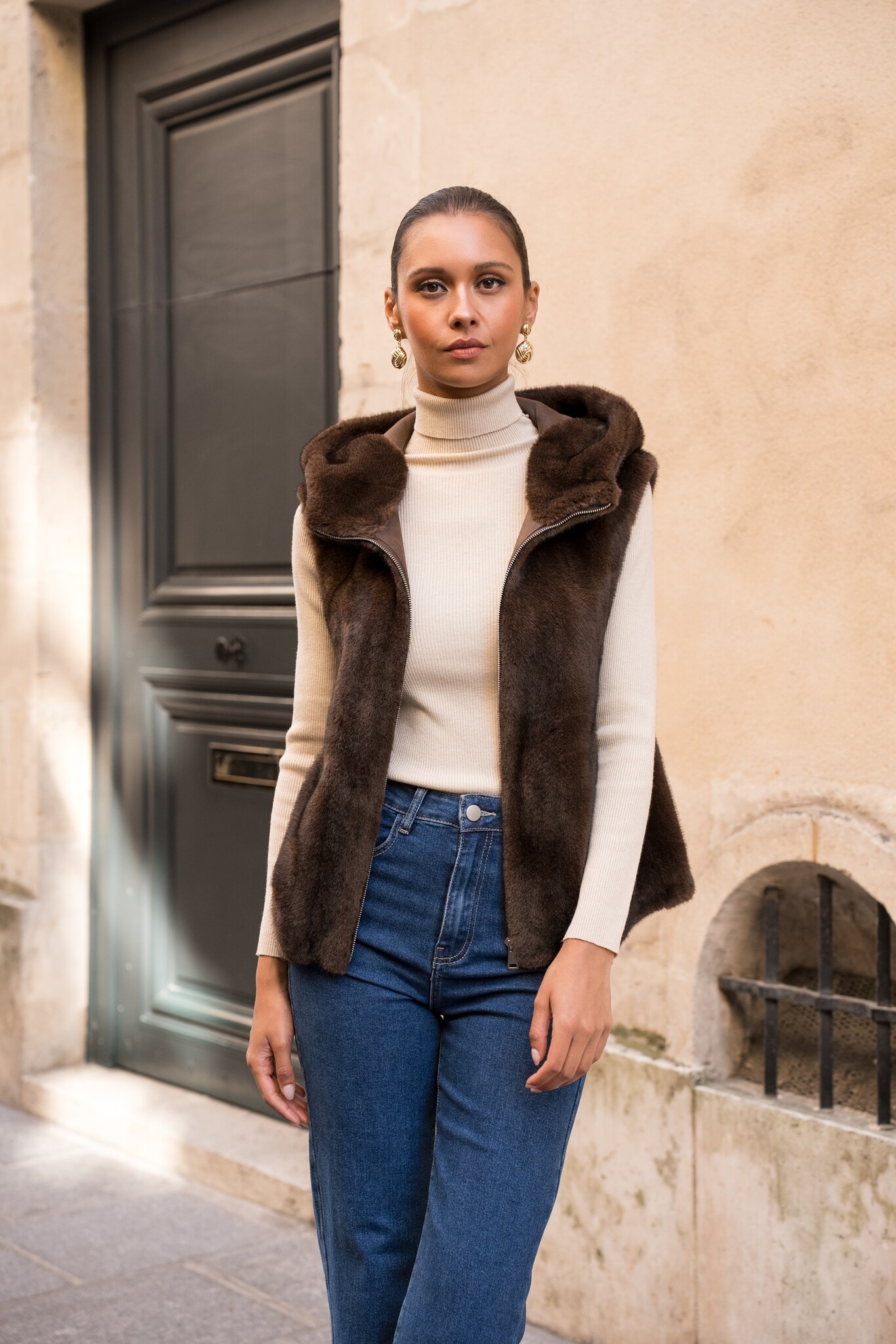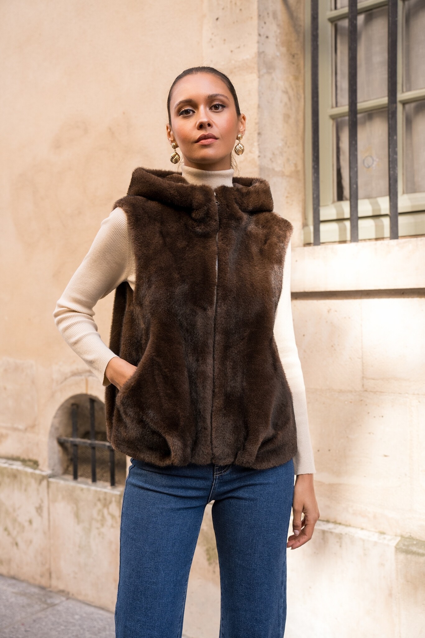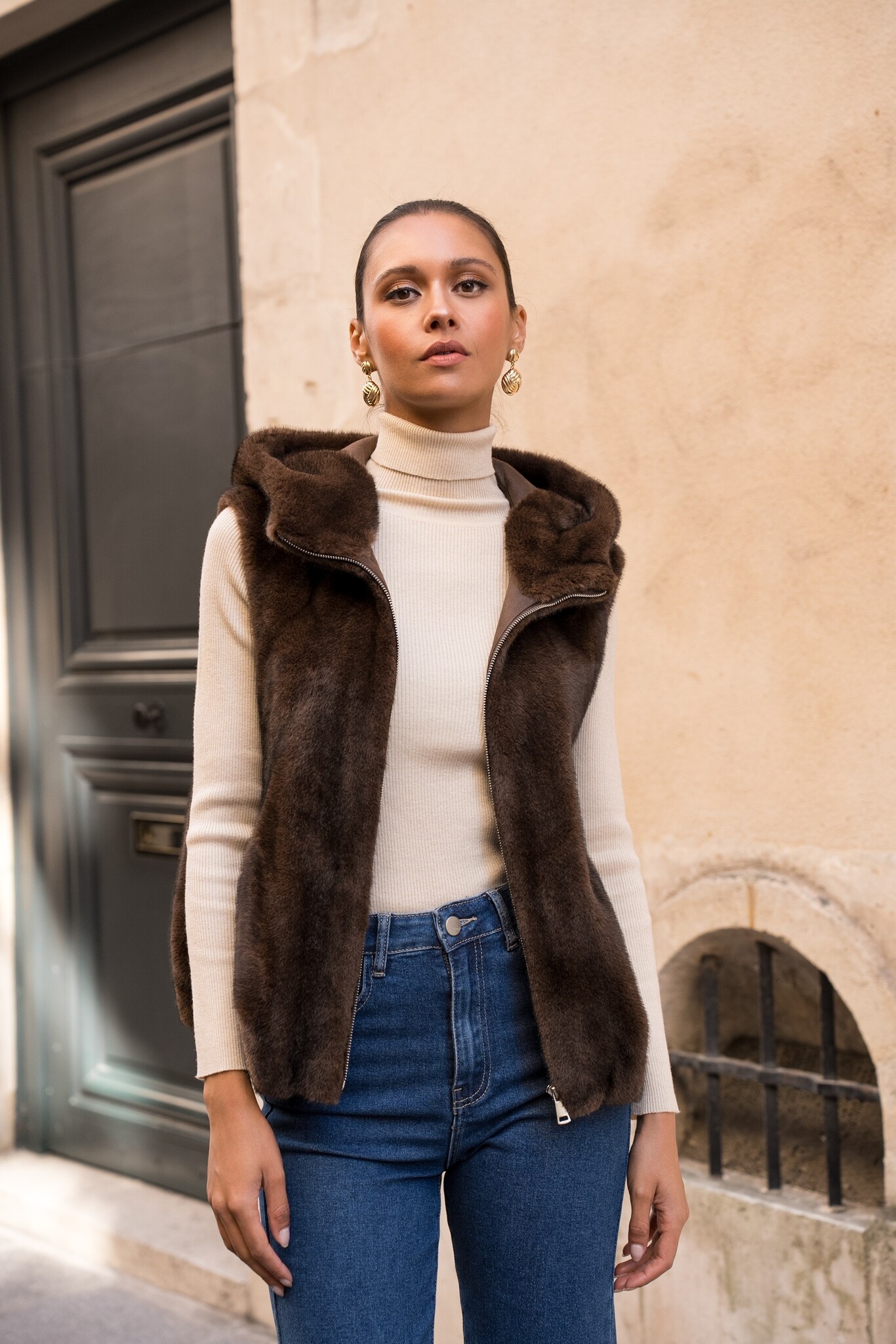 Bont bodywarmer dames donker bruin