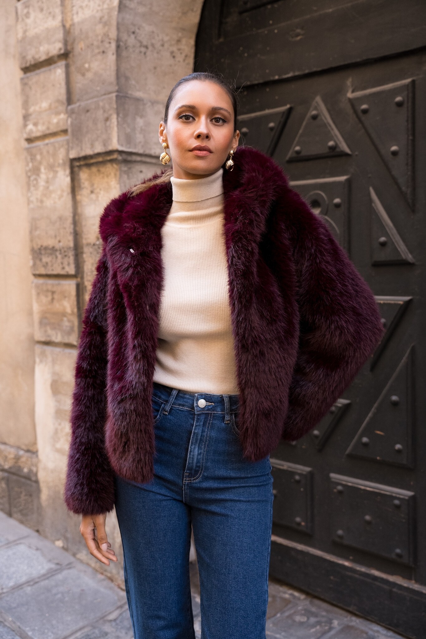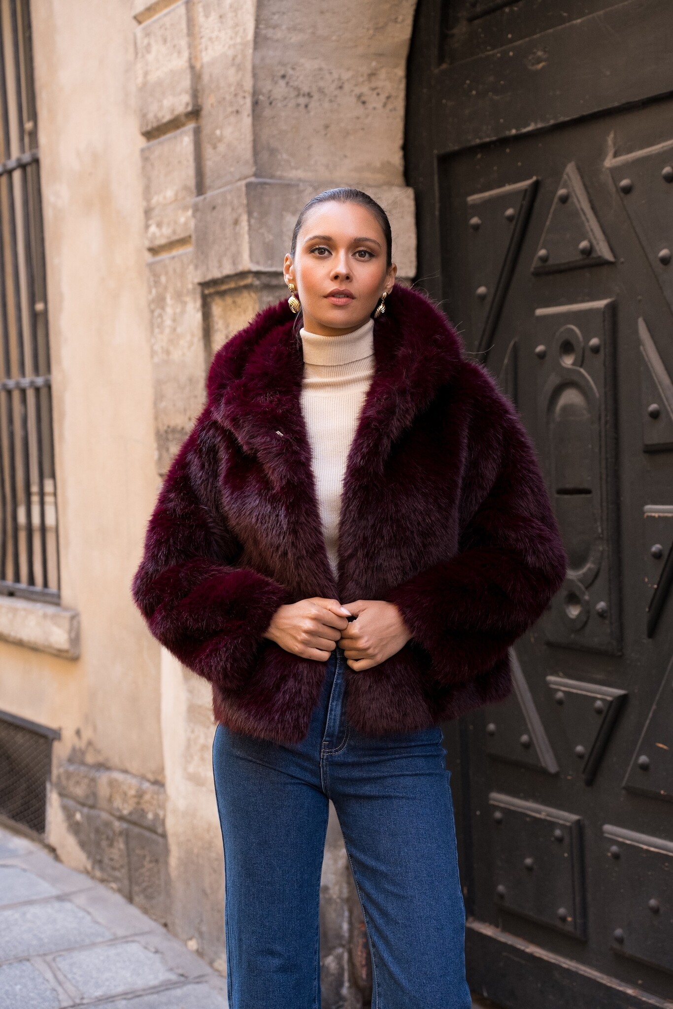 Kort imitatie bontjas dames die gesloten wordt met knop. De bontjas dames bestaat uit imitatie bont. Hoogwaardige kwaliteit. Bontjassen dames zijn nu verkrijgbaar bij leather city in verschillende kleuren.
