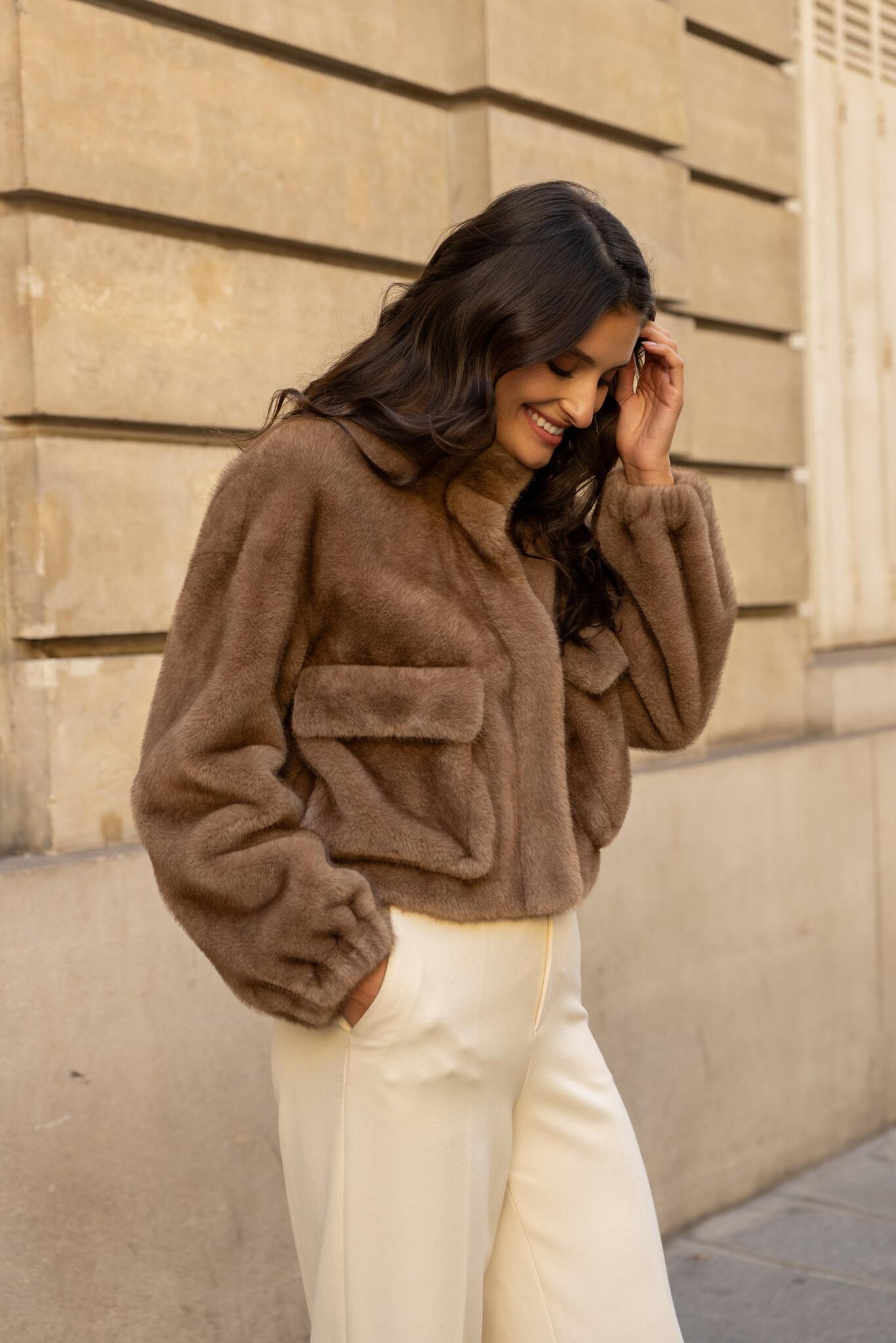 Kort imitatie bontjas dames die gesloten wordt door rits. De bontjas dames bestaat uit imitatie bont. Hoogwaardige kwaliteit. Bontjassen dames zijn nu verkrijgbaar bij leather city in verschillende kleuren.