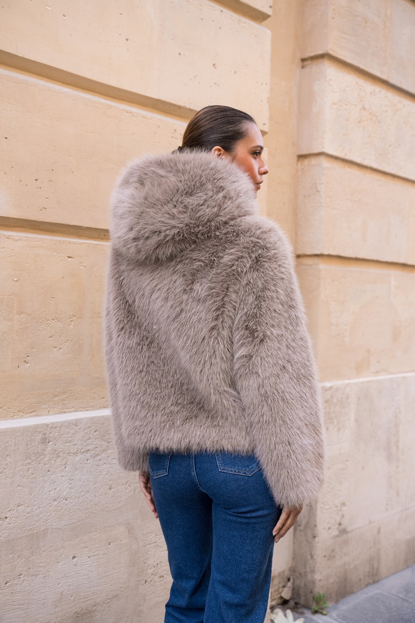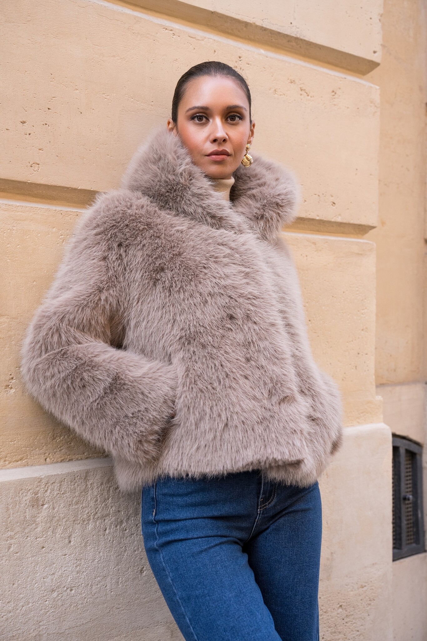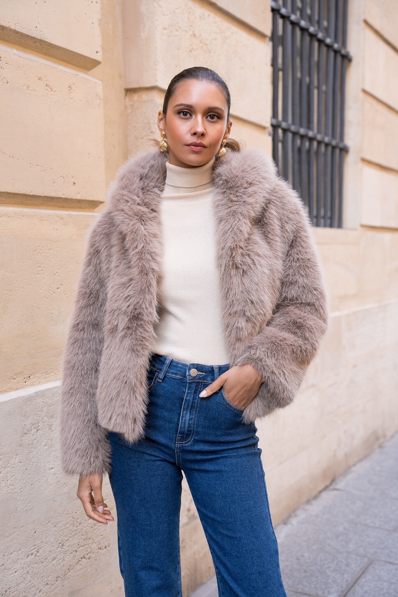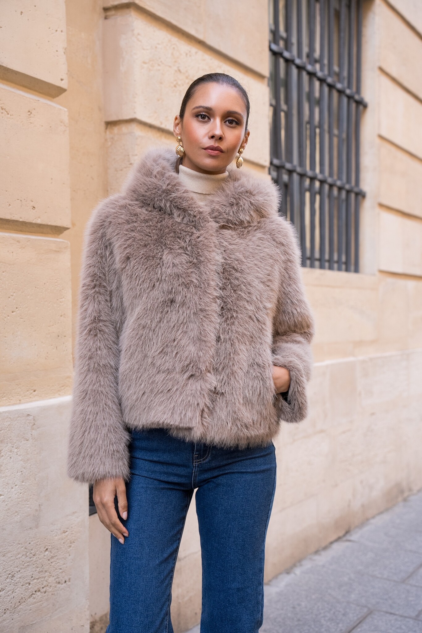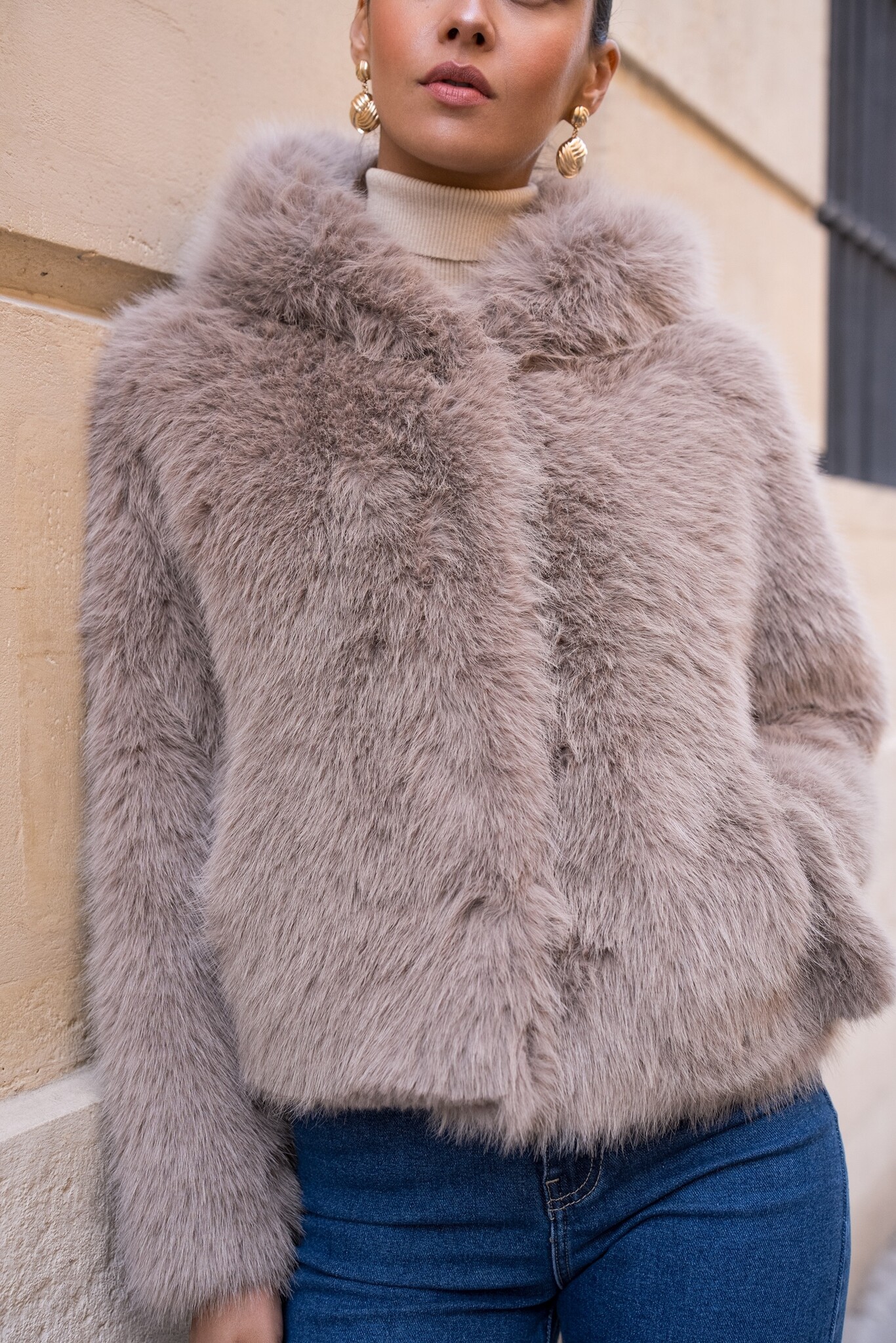 Kort imitatie bontjas dames die gesloten wordt met knop. De bontjas dames bestaat uit imitatie bont. Hoogwaardige kwaliteit. Bontjassen dames zijn nu verkrijgbaar bij leather city in verschillende kleuren.