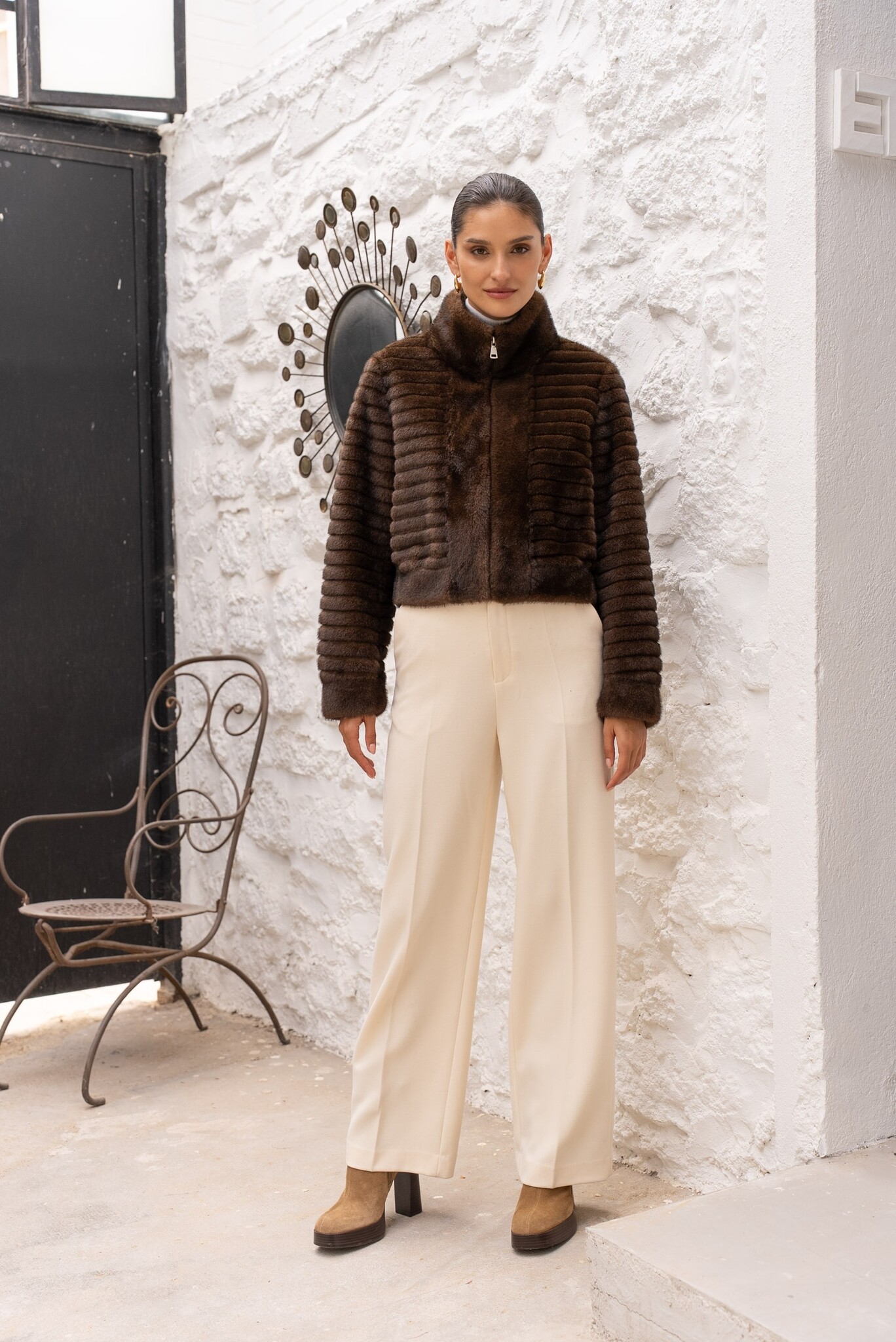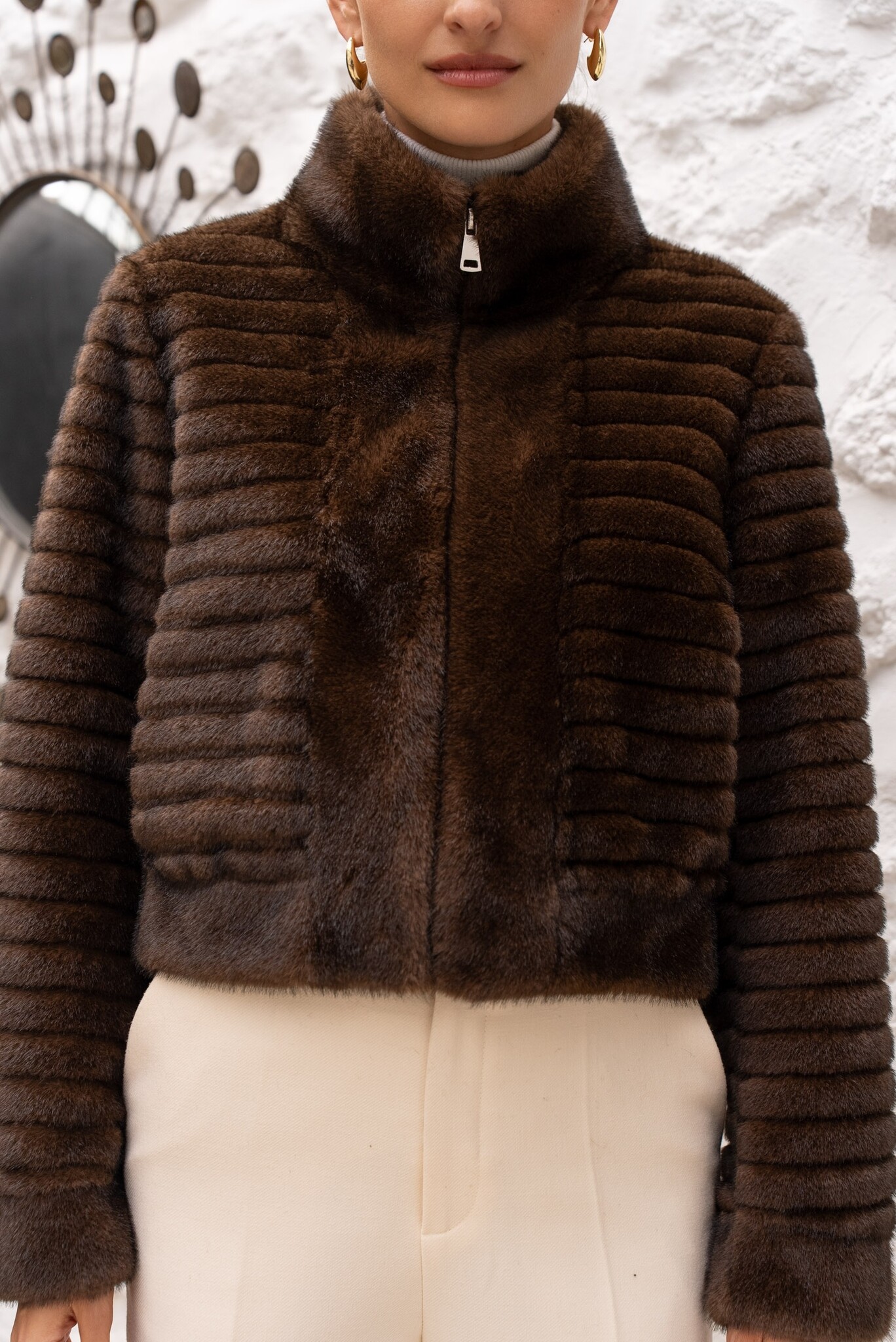 Kort imitatie bontjas dames die gesloten wordt door rits. De bontjas dames bestaat uit imitatie bont. Hoogwaardige kwaliteit. Bontjassen dames zijn nu verkrijgbaar bij leather city in verschillende kleuren.