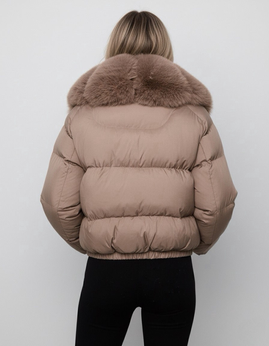 Dames kort winterjas bruin met bont