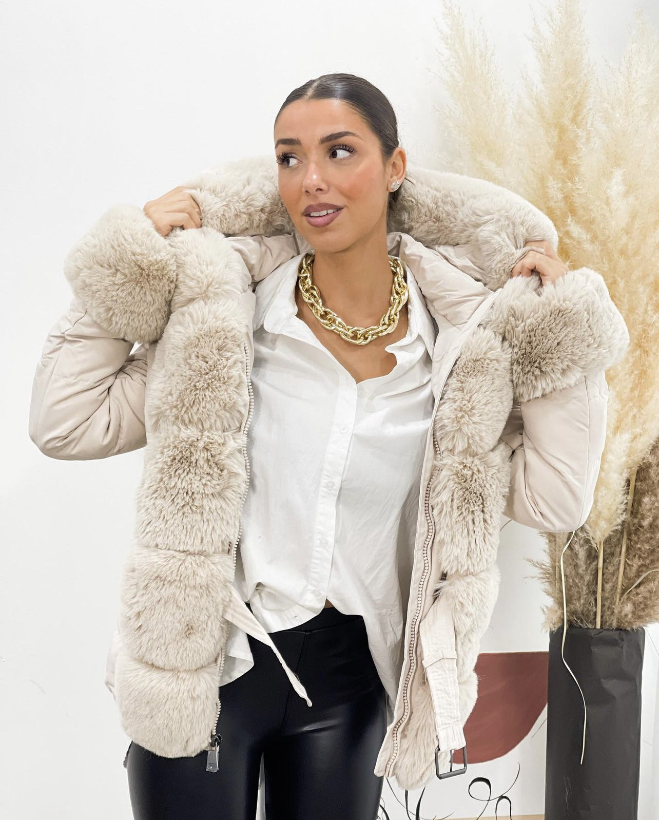 Dames winterjas met bont beige