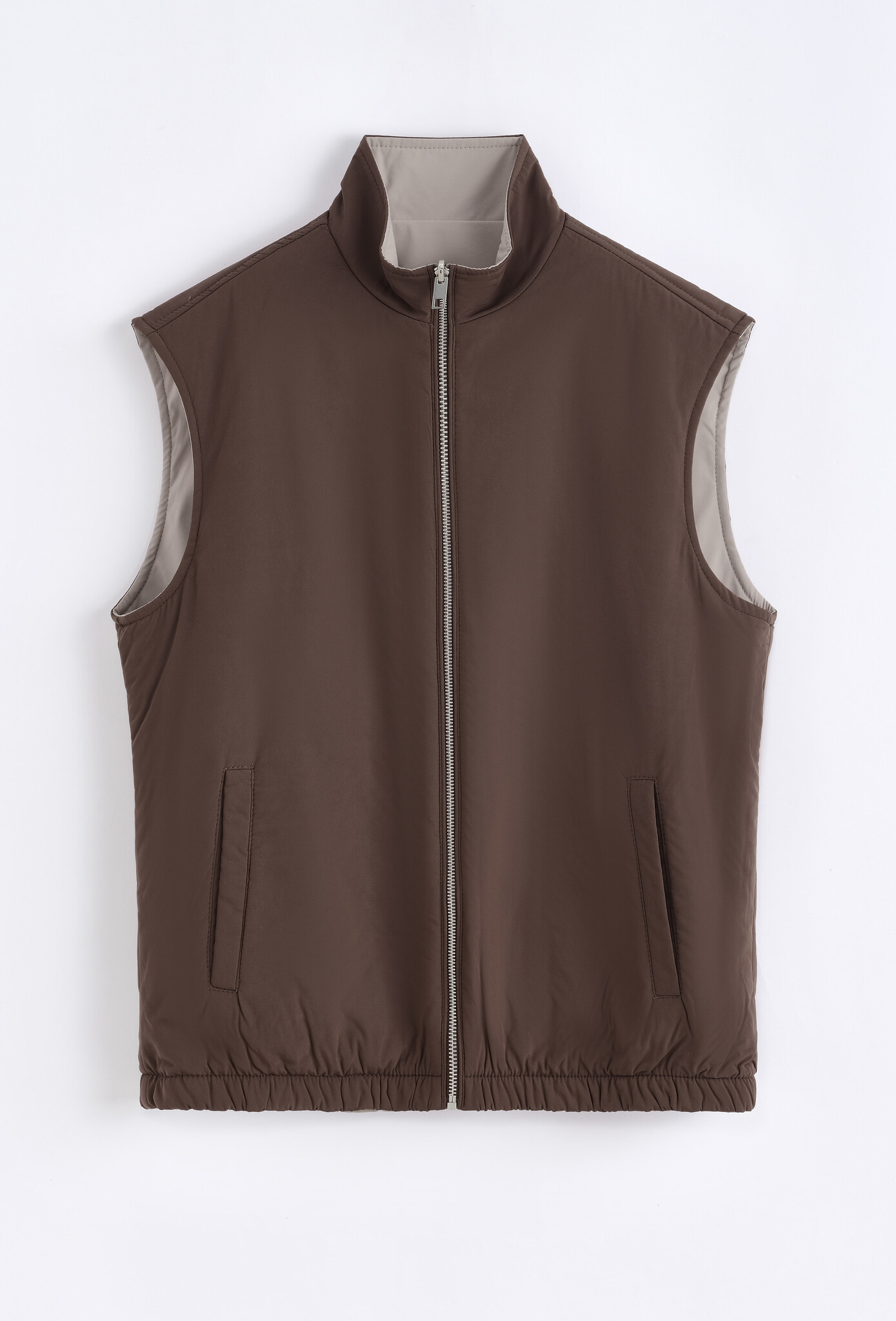 Heren bodywarmer gemaakt van dun kwaliteit. Deze bodywarmer kan twee kanten gedragen worden. Deze bodywarmer sluit met een elastische boord en rits sluiting. De bodywarmer heeft twee steekzakken en 1 binnenzak