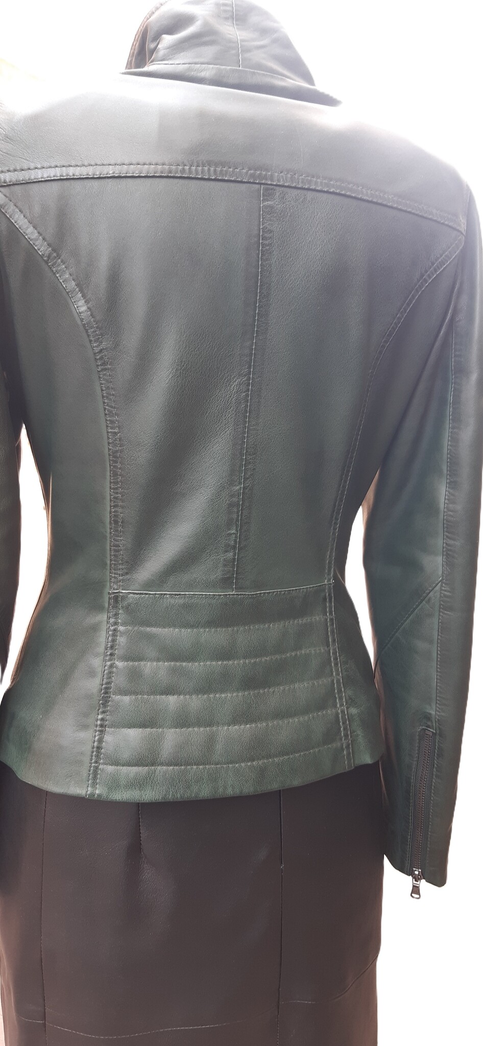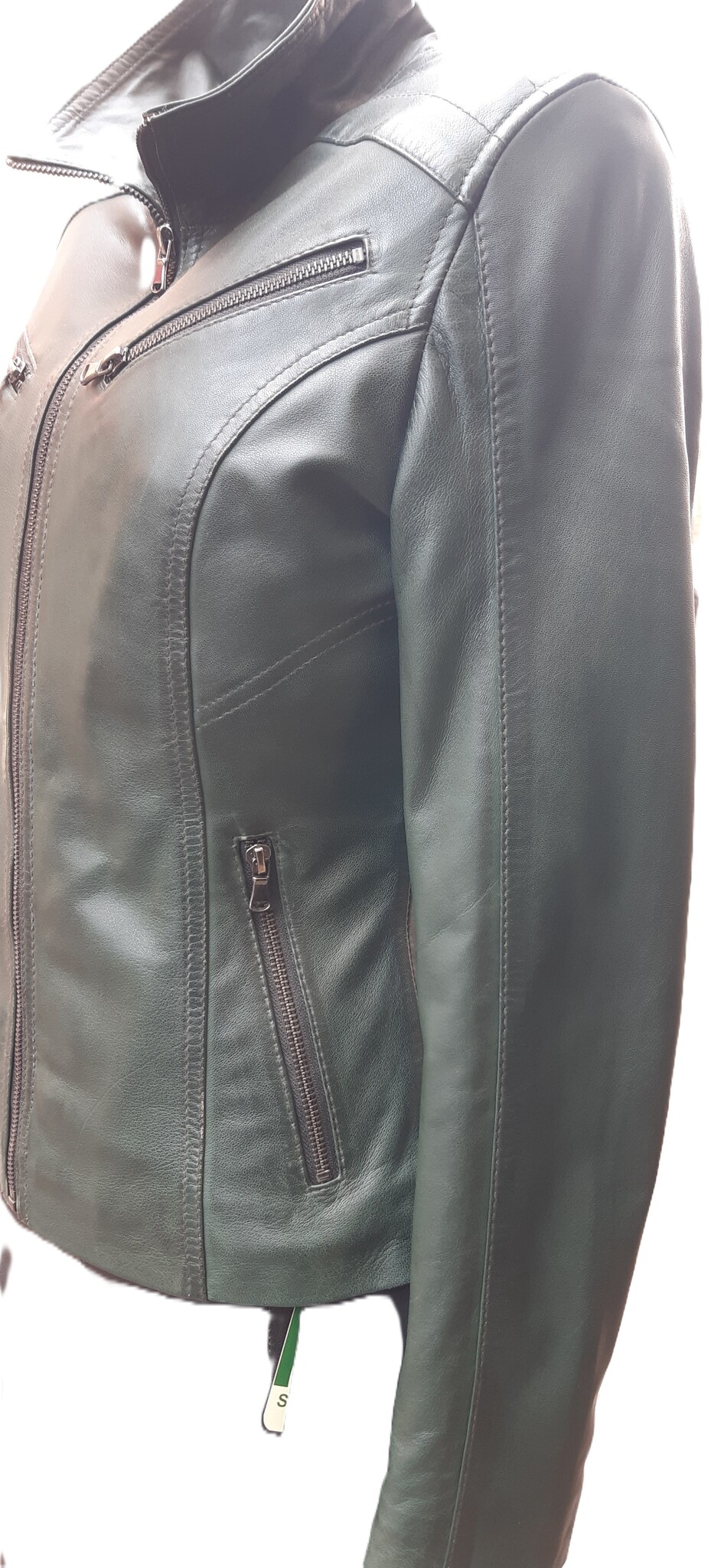 Deze mooie leren jack dames is een mooie toevoeging voor in je kledingkast! De dames leren biker is Italiaanse getailleerd, en heeft twee steekzakken , binnenzak