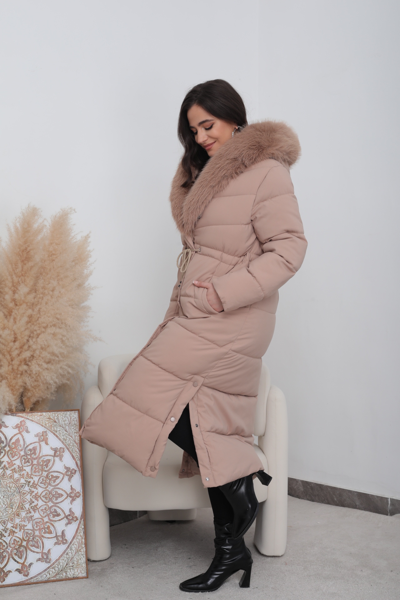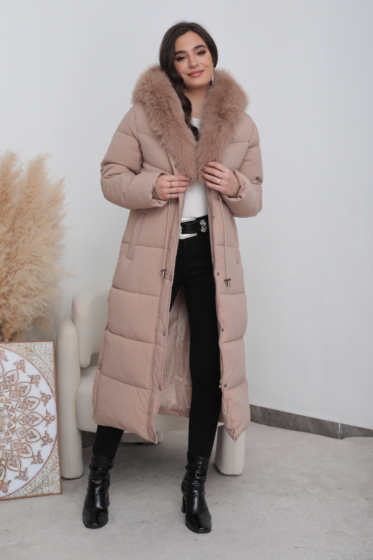 Deze lange gewatteerde jas dames winterjas  is modieuze, ideaal voor de wintertijden. De lange winterjas is ook verkrijgbaar met bont, of in andere kleuren bont. Deze lang parka jas moet je hebben.