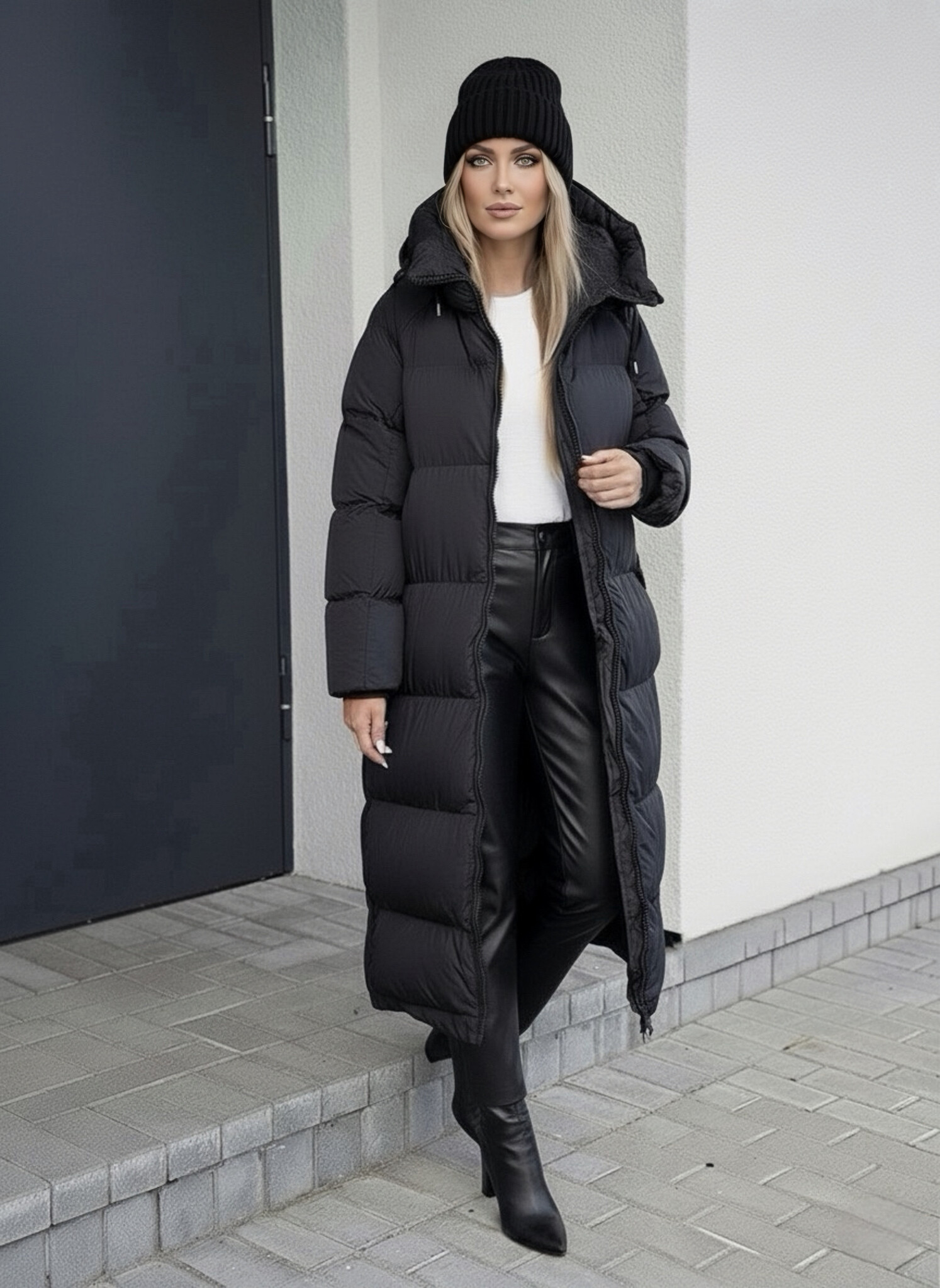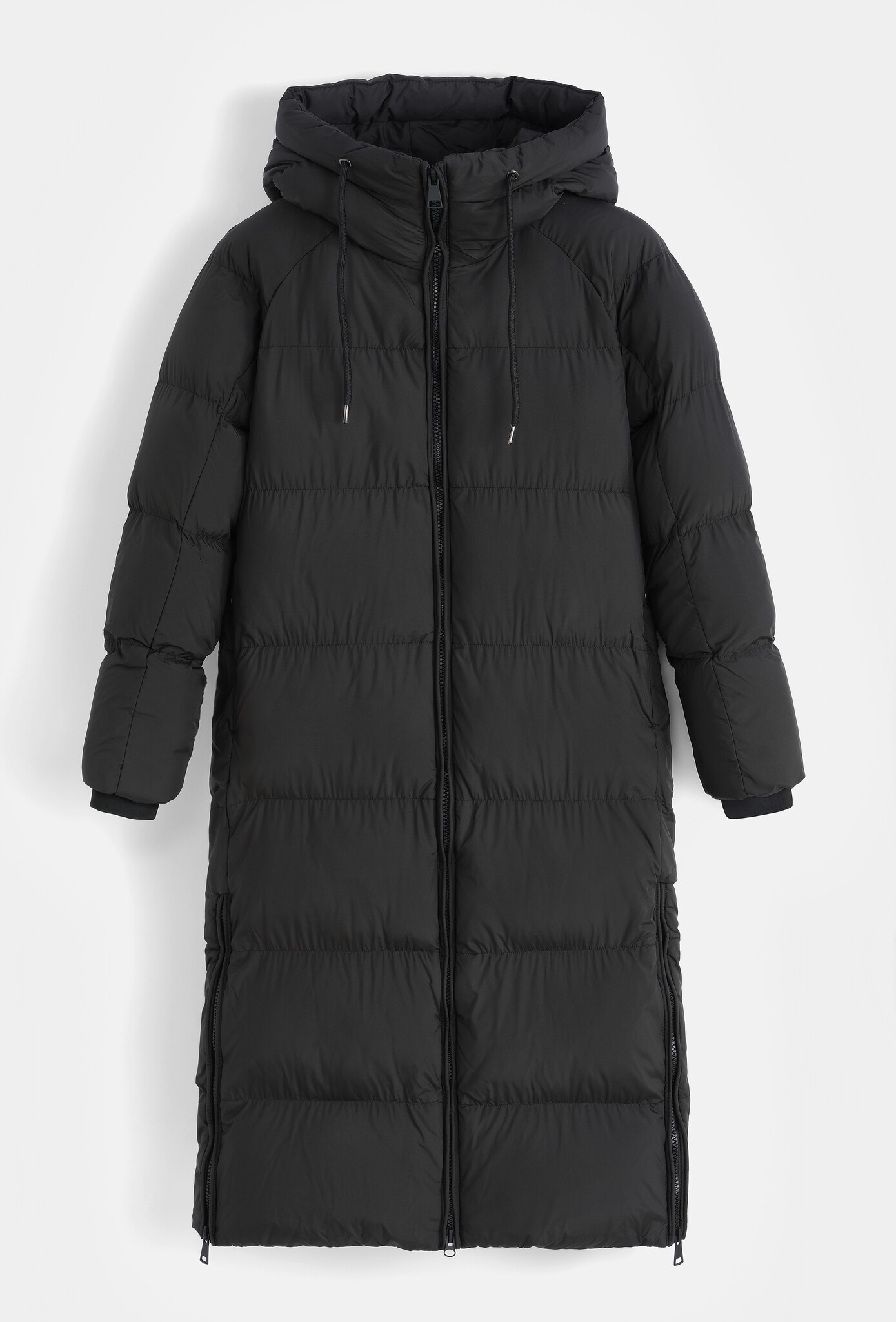 Lange gewatteerde winterjas zwart dames