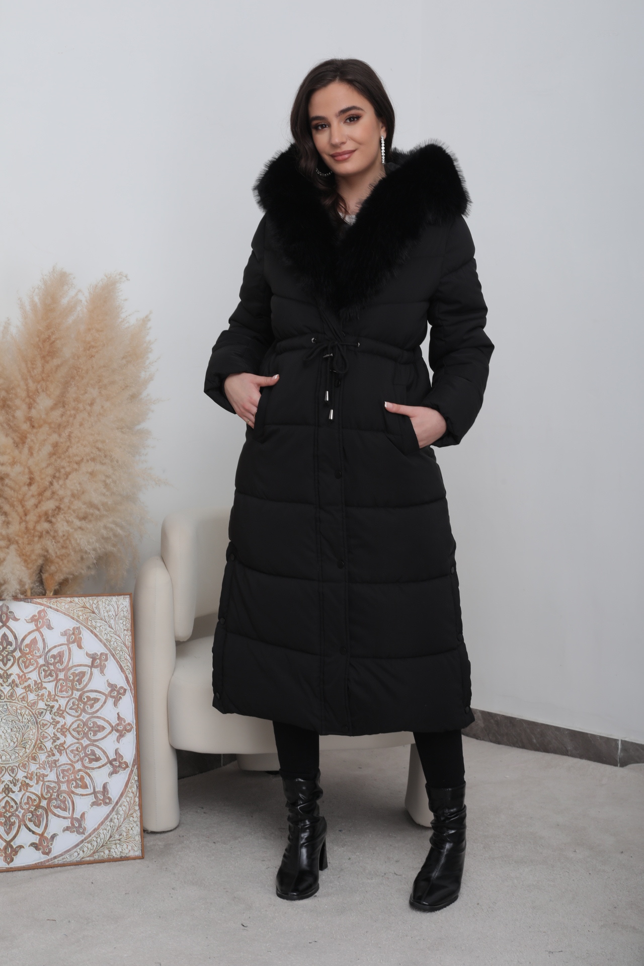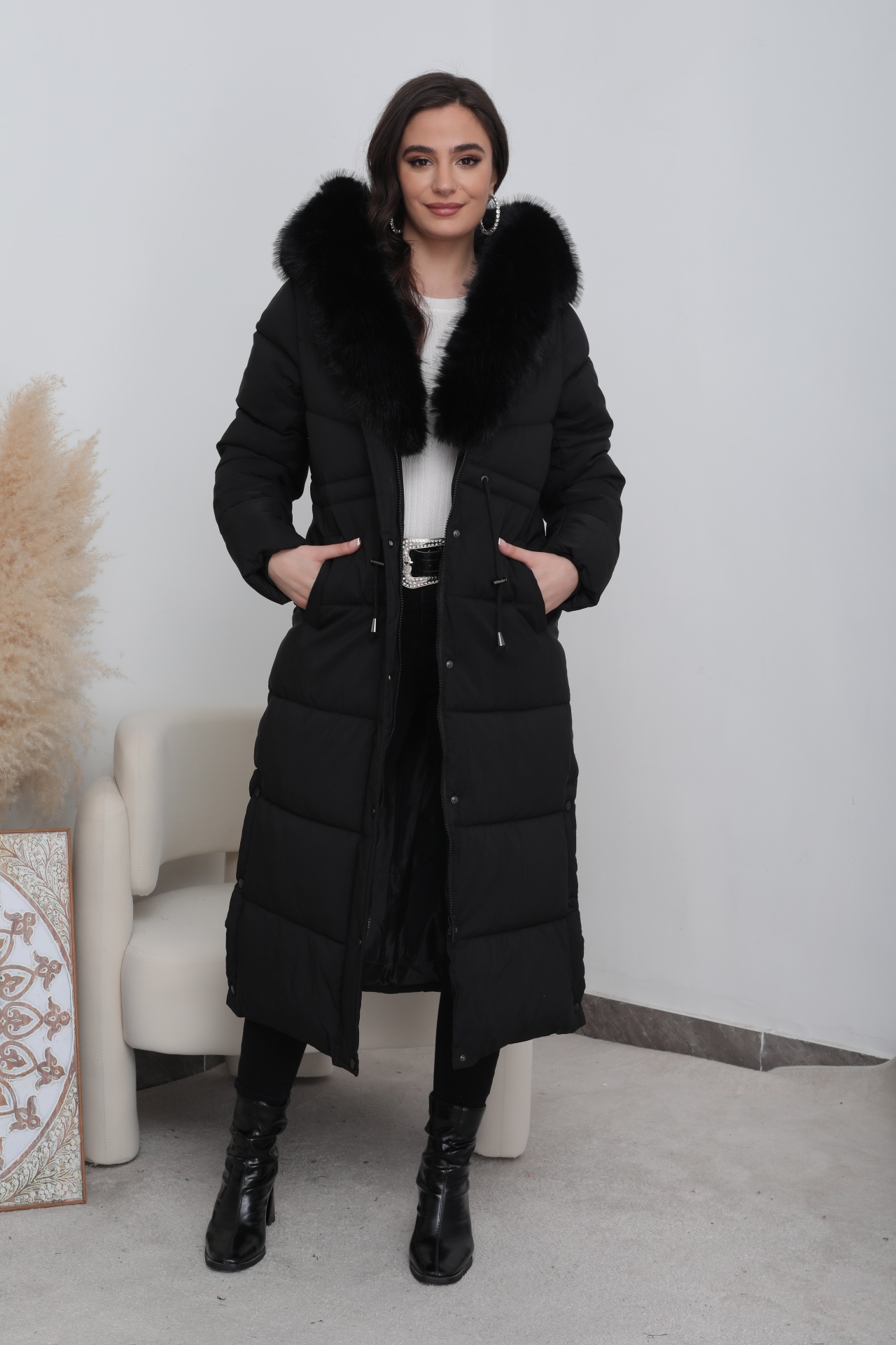 Deze lange gewatteerde jas dames winterjas  is modieuze, ideaal voor de wintertijden. De lange winterjas is ook verkrijgbaar met bont, of in andere kleuren bont. Deze lang parka jas moet je hebben.