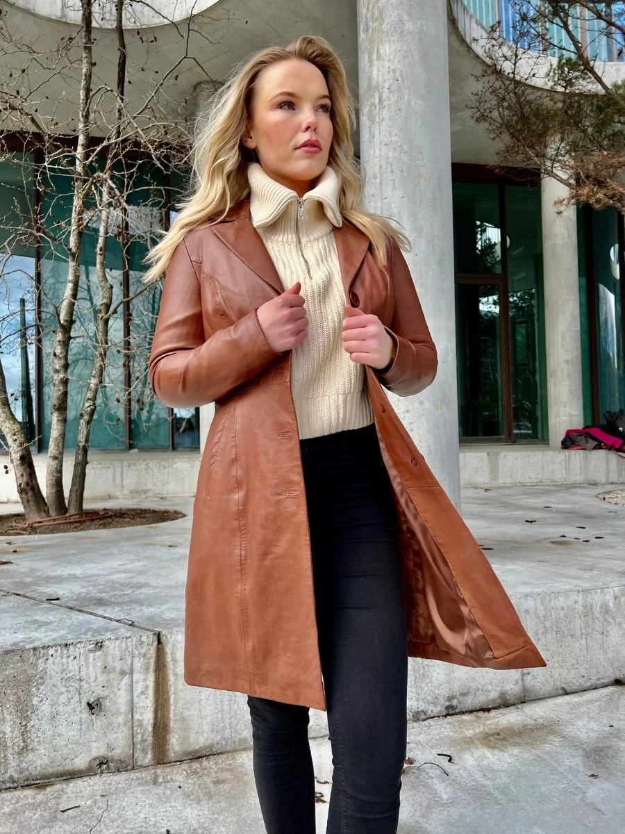 Deze dames lange leren jas heeft een trendy, Italiaans design en voelt daarmee heerlijk zacht aan. Deze leren jas is in verschillende kleuren te verkrijgen. De dames leren jas is dankzij de luxueuze -behandeling uniek!