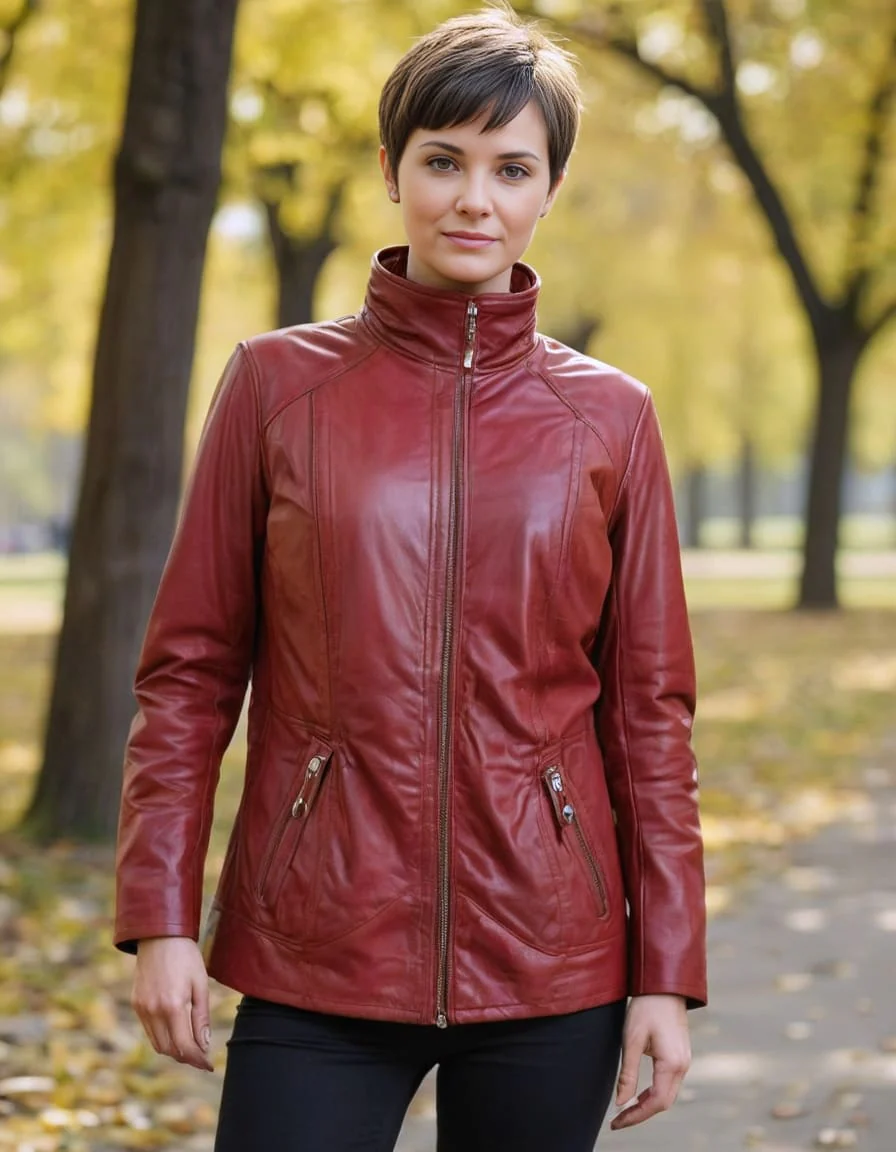 Deze leren jasje dames beschikt over een luxueuze afwerking, Italiaans design afgewerkt. Leren jassen dames, van Leather City zijn uitgevoerd in rood lamsleer, Dit rood dames leren jas is tevens in andere kleuren verkrijgbaar