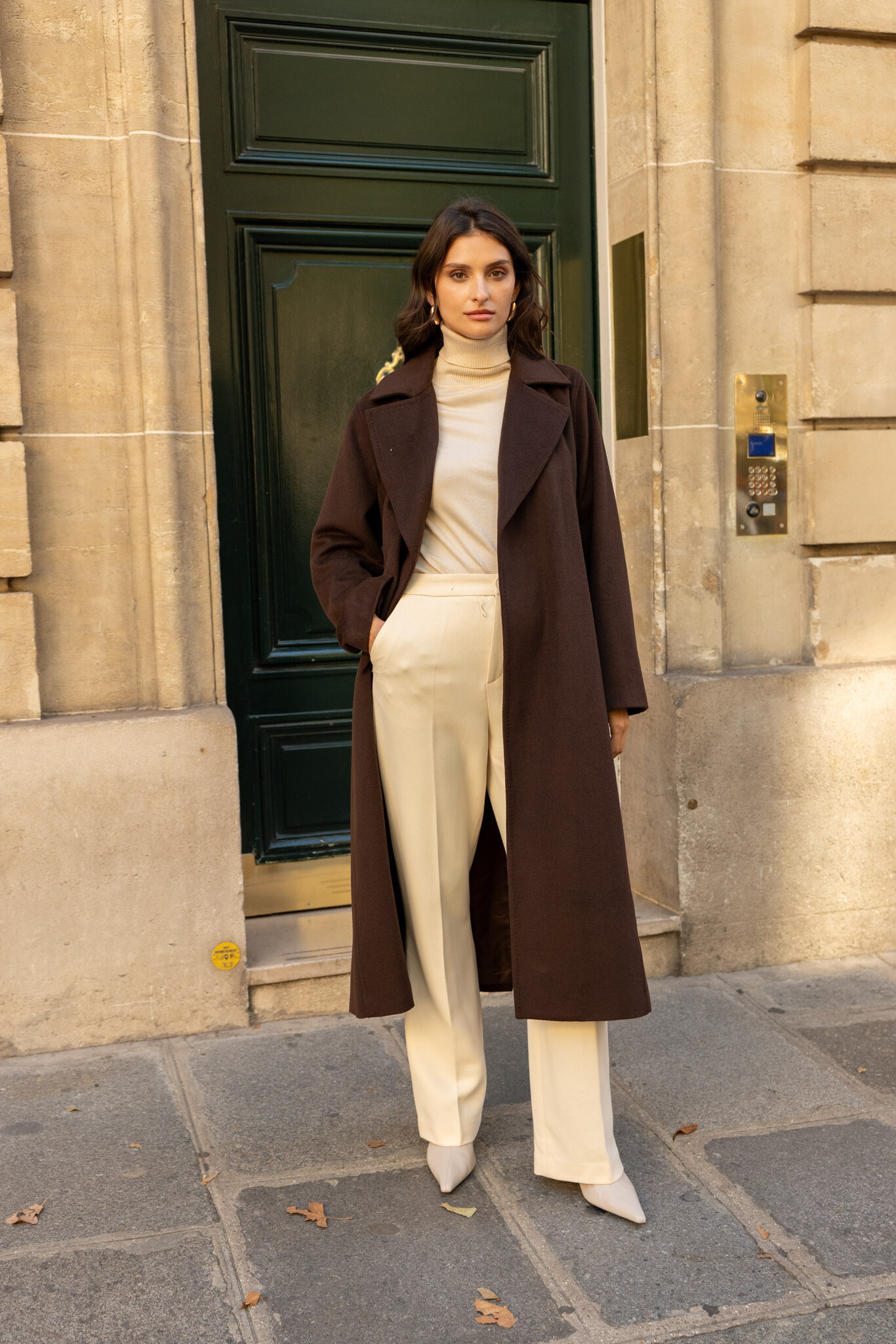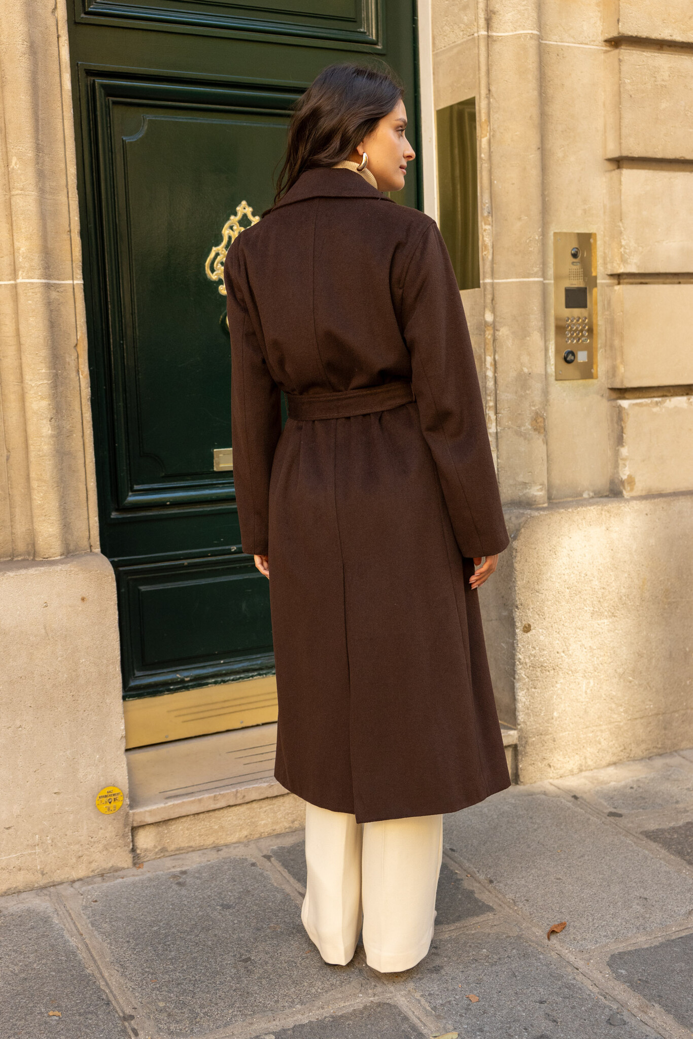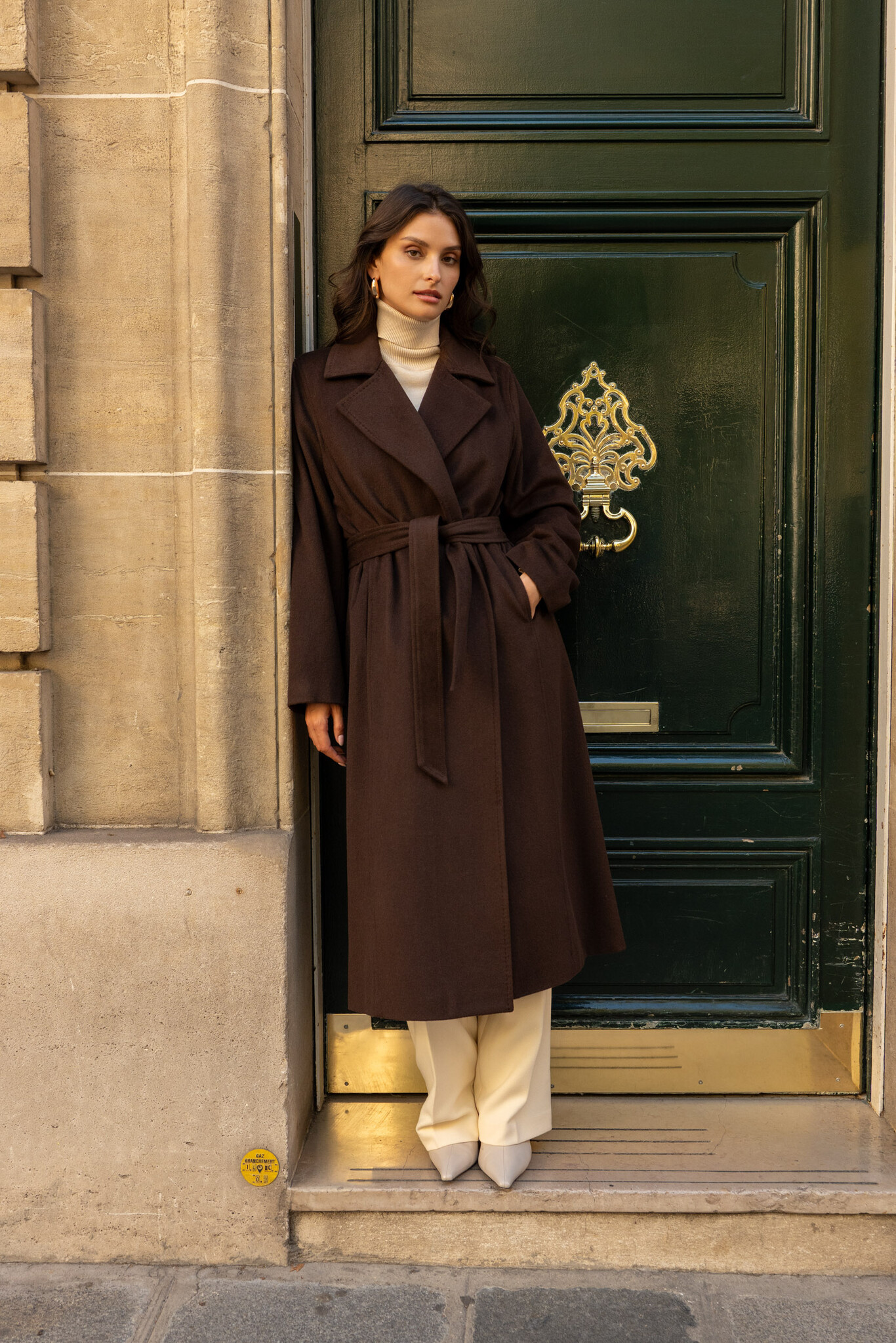 Deze wollen jas is op maat gemaakt voor een luxe look. Deze lang wollen jas heeft klassieke riem. De jas is gemaakt van een zachte wolmix en volledig gevoerd.