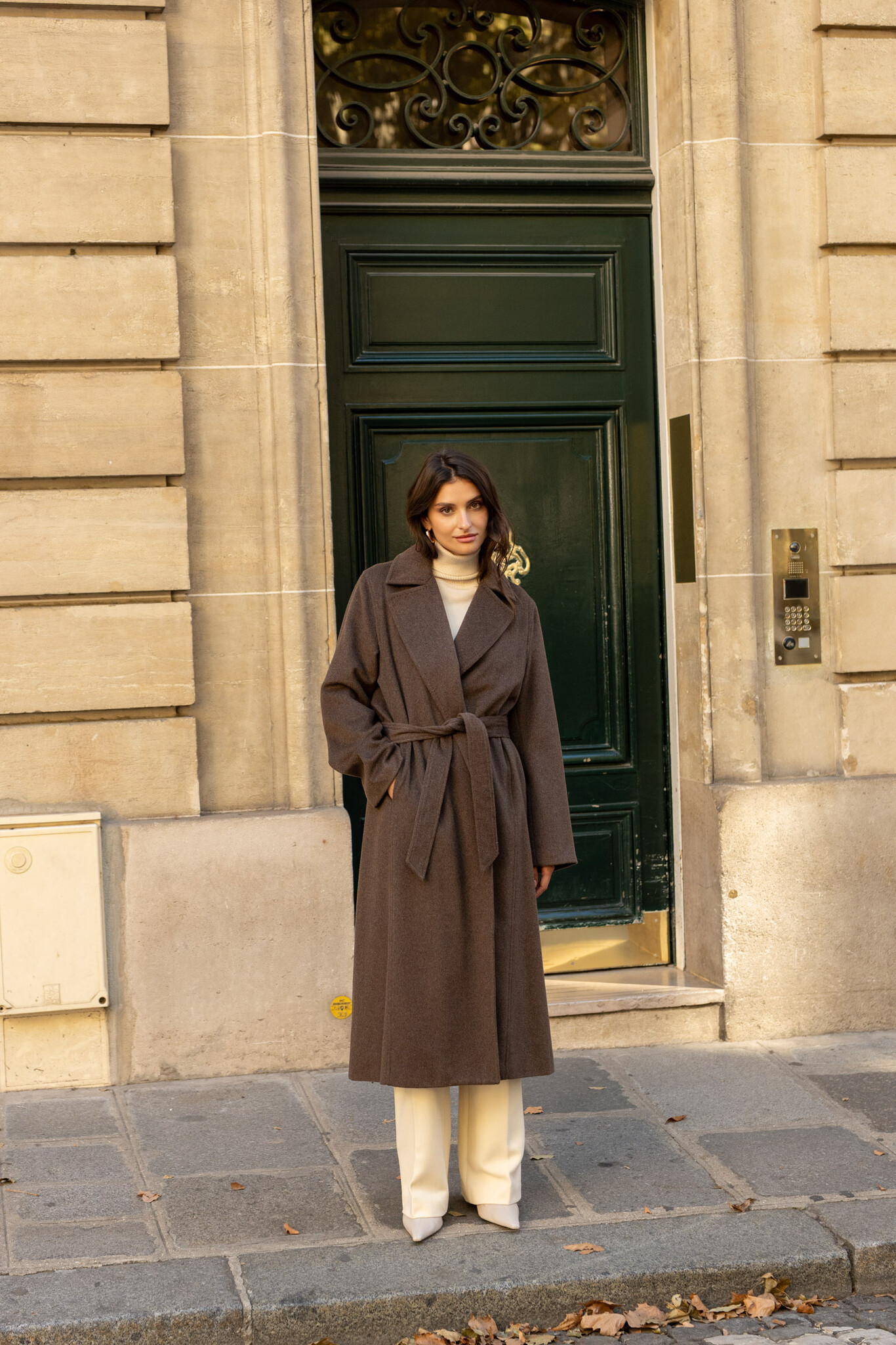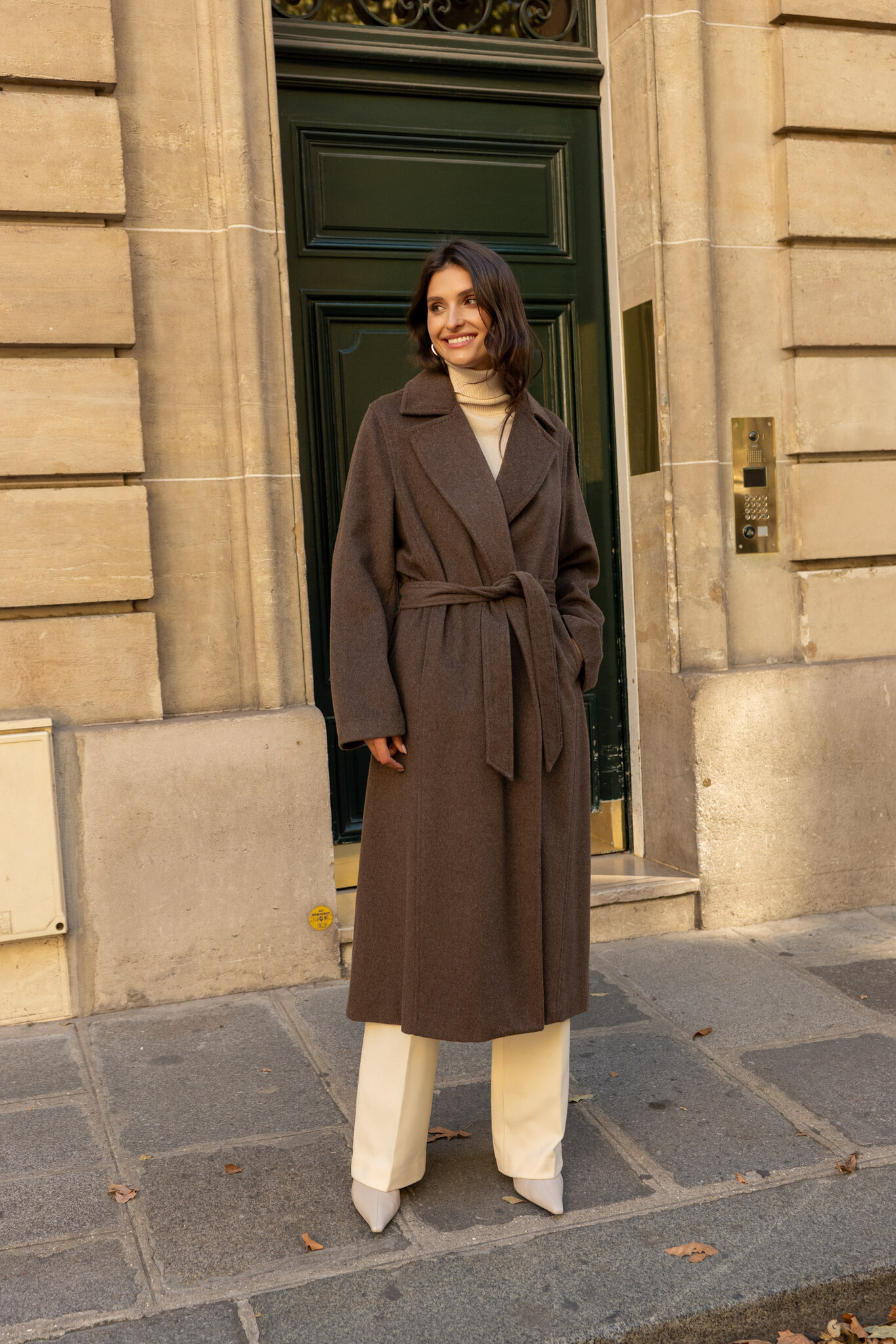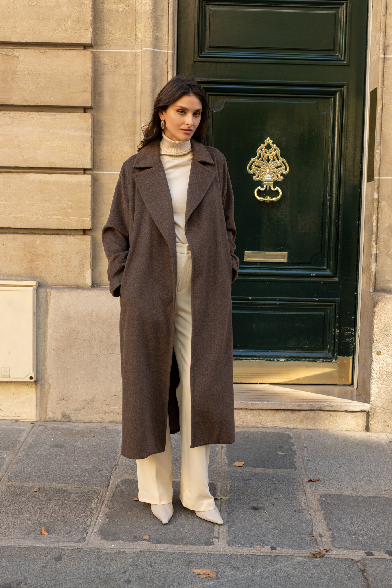 Wollen jas dames lang Coffee bruin