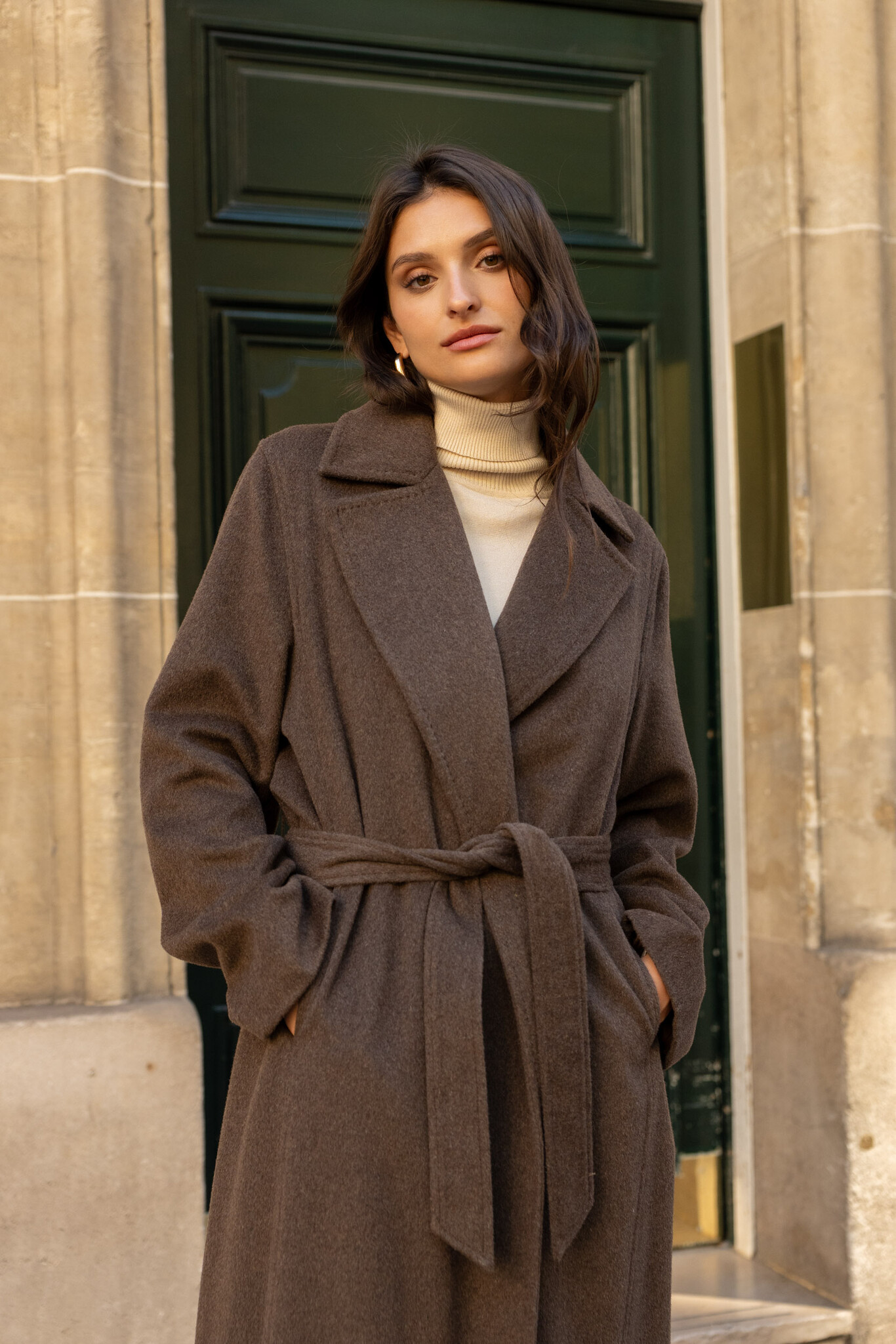 Deze wollen jas is op maat gemaakt voor een luxe look. Deze lang wollen jas heeft klassieke riem. De jas is gemaakt van een zachte wolmix en volledig gevoerd.